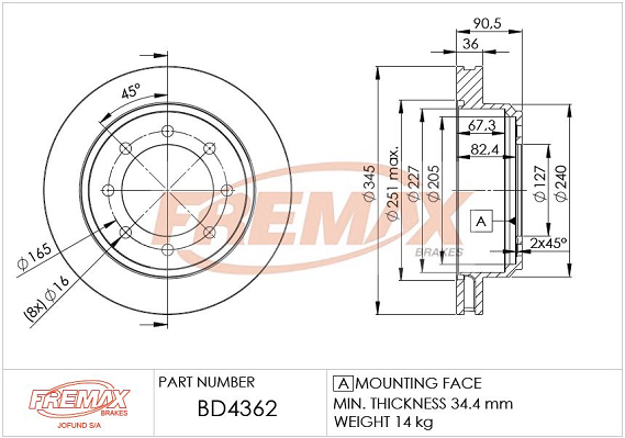 брой на дупките: 4вид на спирачния диск: вентилиранвисочина: 45,2mmвъншен диаметър: 235mmдебелина на спирачния диск: 22mmстрана на монтаж: отпредцентриращ диаметър: 55mm