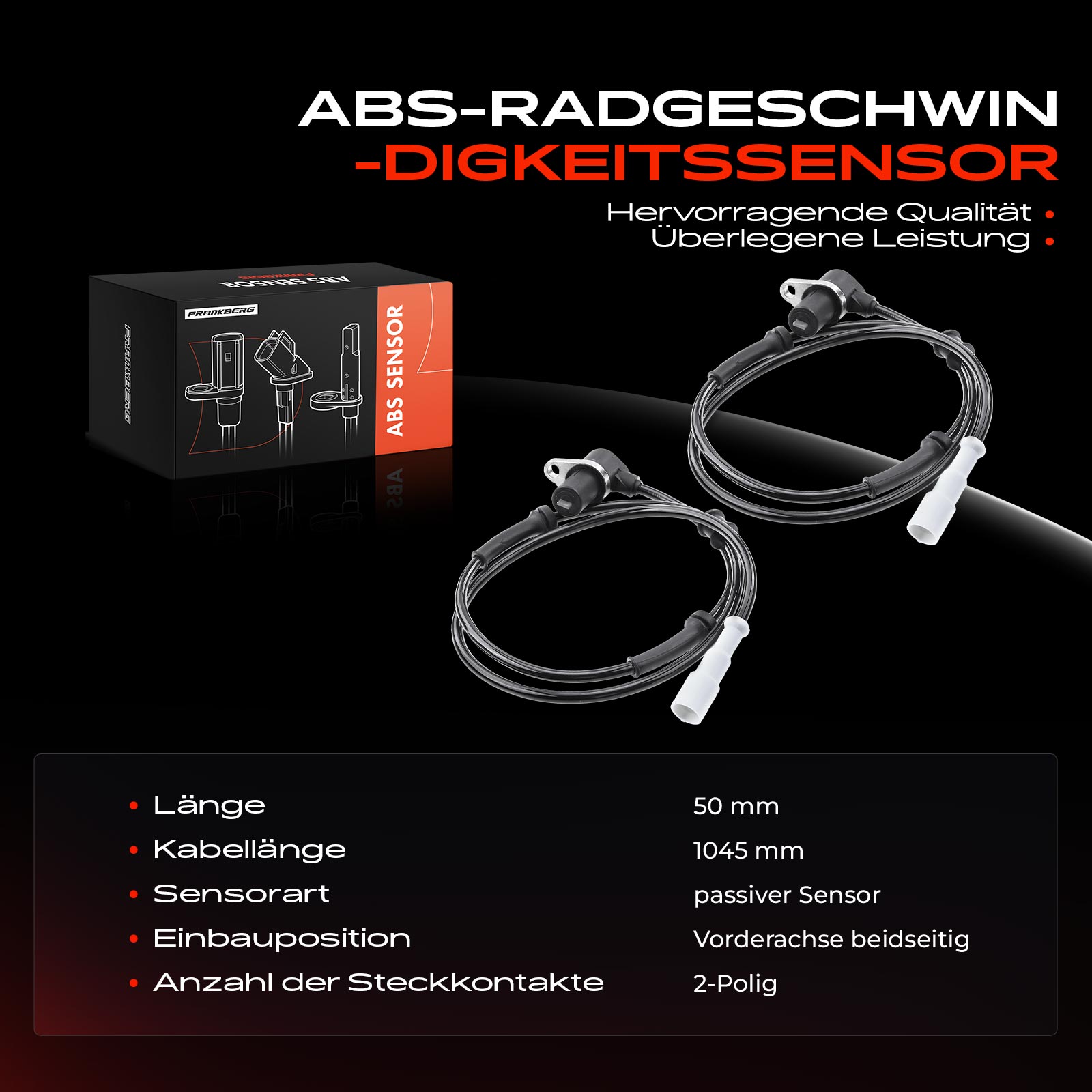 брой на щепселните контакти: 2-щифтенвид на датчика: пасивен сензордължина: 50mmдължина на кабела: 1045mmстрана на монтаж: от двете страни на предната ос