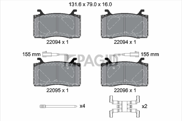 Брой индикатори за износване: 2за освисочина: 79,4mmдебелина: 15,8mmдължина: 131,8mmконтактен датчик за износване: с акустично предупреждение за износванестрана на монтаж: предна ос