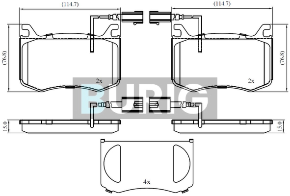 страна на монтаж: предна освисочина: 77,1mmдебелина: 15,2mmдължина на контактния датчик: 160mmконтактен датчик за износване: вкл. контактен датчик за износванеконтролен знак за преглед: E1 90R-02A0629/0167ширина: 114,5mm