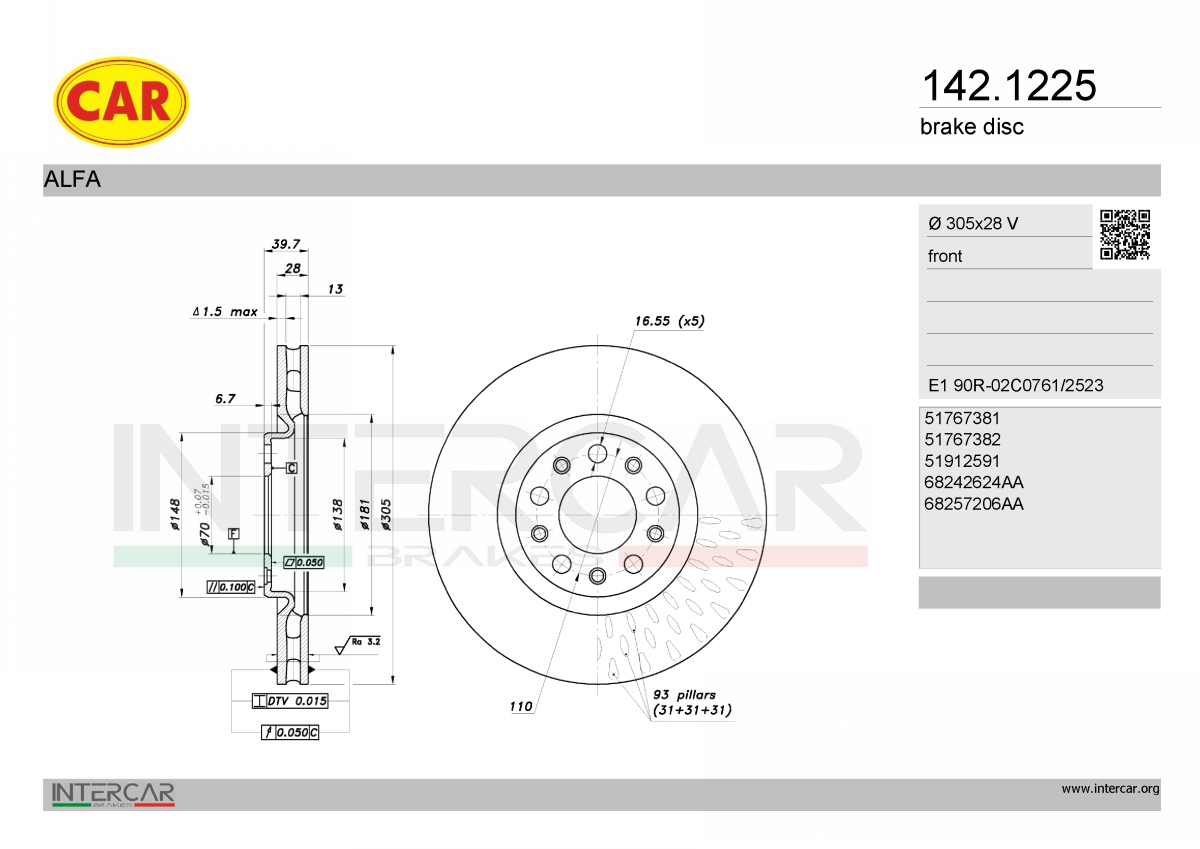 норма за изгорелите газове: 7обурудване на автомобила: за автомобили без спортен пакетджанта: 5-дупкиброй на дупките за закрепване: 5вид на спирачния диск: вентилиранвисочина: 39,7mmвъншен диаметър: 305mmдебелина на спирачния диск: 28mmмин. дебелина: 26mmстрана на монтаж: предна остегло: 7,93kgцентриращ диаметър: 70mm