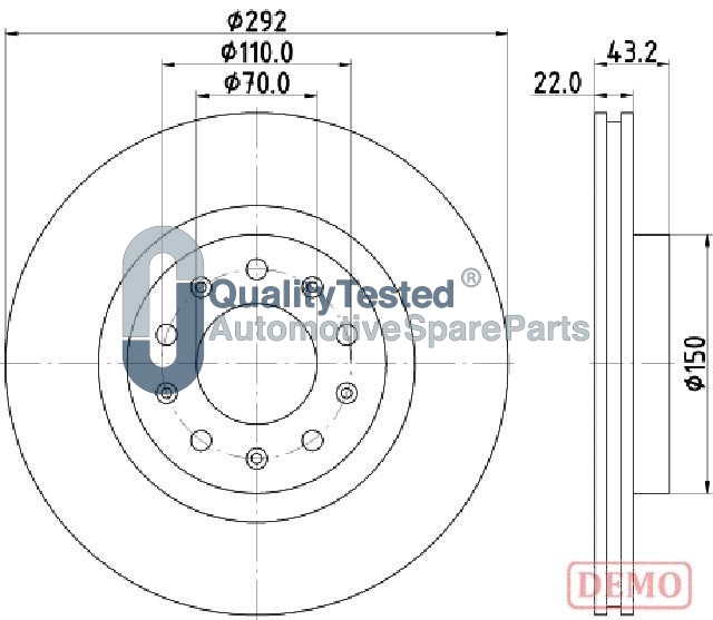 брой на дупките: 5вид на спирачния диск: вентилиранвид на спирачния диск: перфориранвисочина: 43,2mmвъншен диаметър: 292mmвътрешен диаметър: 139mmдебелина на спирачния диск: 22mmДиаметър на кръговата стъпка Ø: 110mmмин. дебелина: 20mmмярка на резбата: 16,7повърхност: галванизиранстрана на монтаж: задна остегло: 6,2kgцентриращ диаметър: 70mm