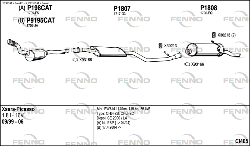 година на производство от: 200006код на двигателя: 6FZ (EW7J4)степен на стандарта за отработени газове: E2