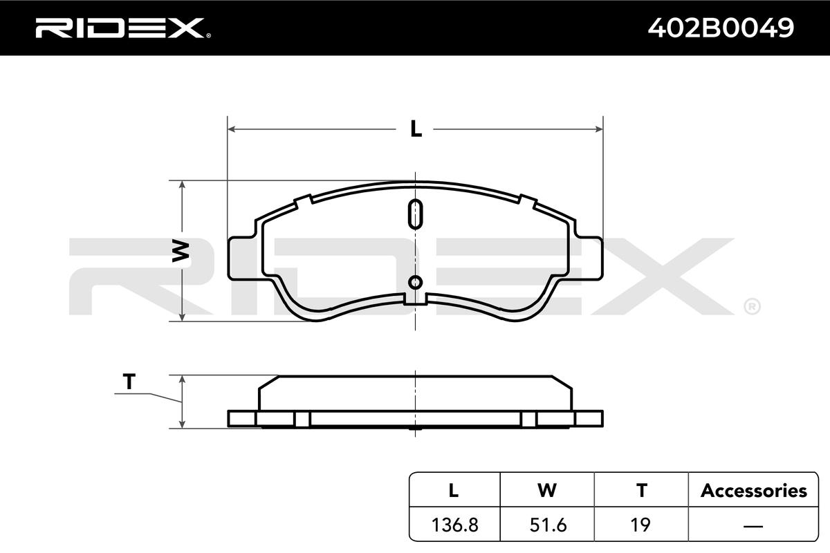 височина: 50,8mmдебелина: 18,8mmза OE-номер: 1611293980контактен датчик за износване: не е за подготвен за предупредителен датчик за износванестрана на монтаж: предна осширина: 137mm