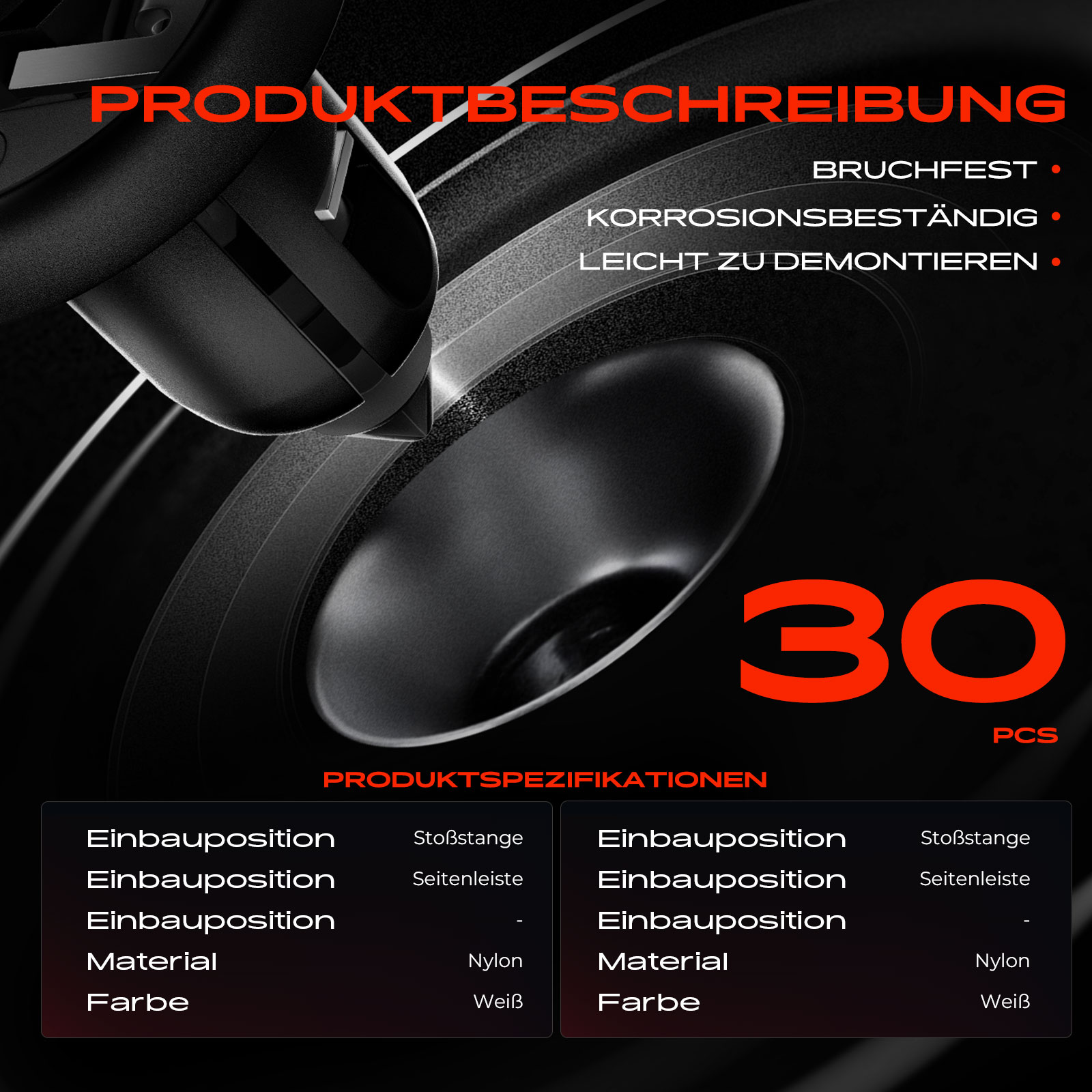 гаранция: 5 години гаранция или до 75 000kmединица-мярка за количество: комплектколичество: 25материал: пластмаса