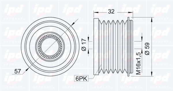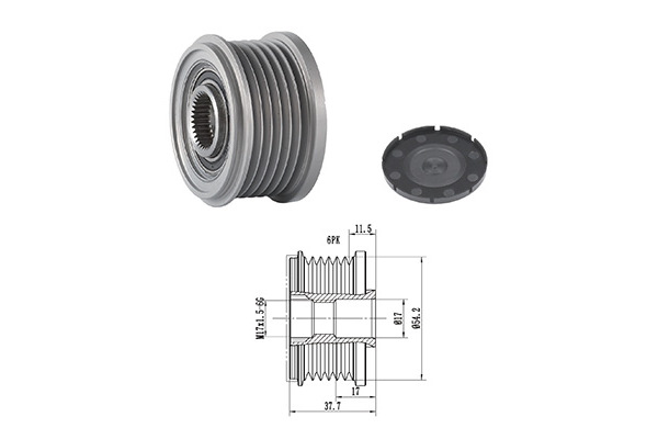 обурудване на автомобила: за автомобили без функция старт/стопограничение за производител: Bosch Unit OEсамо във връзка с: BBA2456брой на ребрата: 6вид на резбата: вътрешна резбамярка на резбата: M16 x 1.5mmобща дължина: 33,6mmРемъчна шайба Ø: 56mm