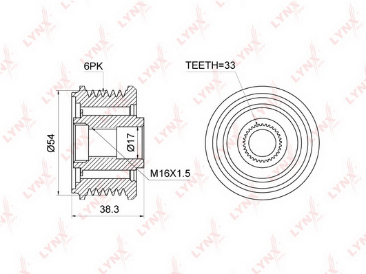 брой на каналите: 6версия: OE EQUIVALENTвъншен диаметър: 54mmвътрешен диаметър: 17mmширина: 38,3mm