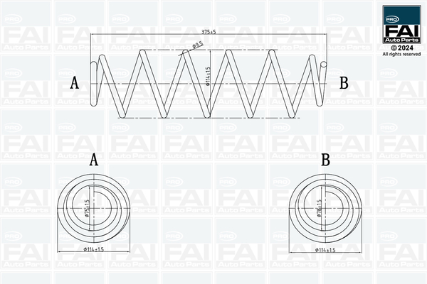 страна на монтаж: задна осброй на навивките: 7външен диаметър: 114mmдиаметър на жичките: 9,5mmдължина: 375mmформа на пружина: спирална пружина с еднаква дебелина на метала