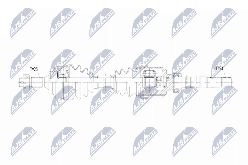 тип трансмисия: MCвъншни зъби от страна на колелото: 25външни зъби откъм диференциал: 24дължина: 625mmстрана на монтаж: на предната ос отляво