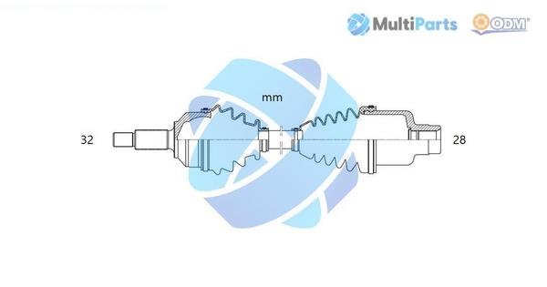 външни зъби от страна на колелото: 32външни зъби откъм диференциал: 28дължина: 523mmстрана на монтаж: на предната ос отдяснотип на трансмисията: ръчна скоростна кутия