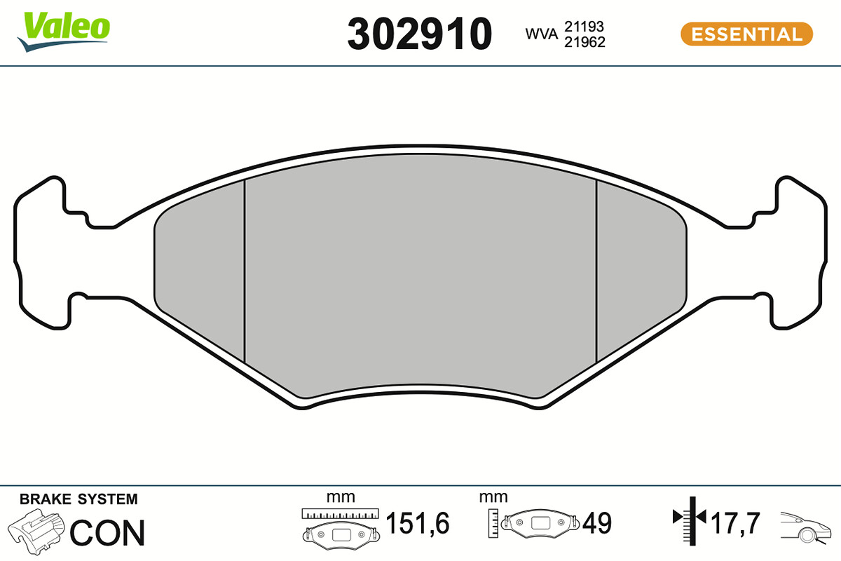 страна на монтаж: предна осWVA-номер: 21193дебелина: 18mmдължина: 151,3mmконтактен датчик за износване: без предупредителен контактен датчикспирачна система: ATEширина: 49mm