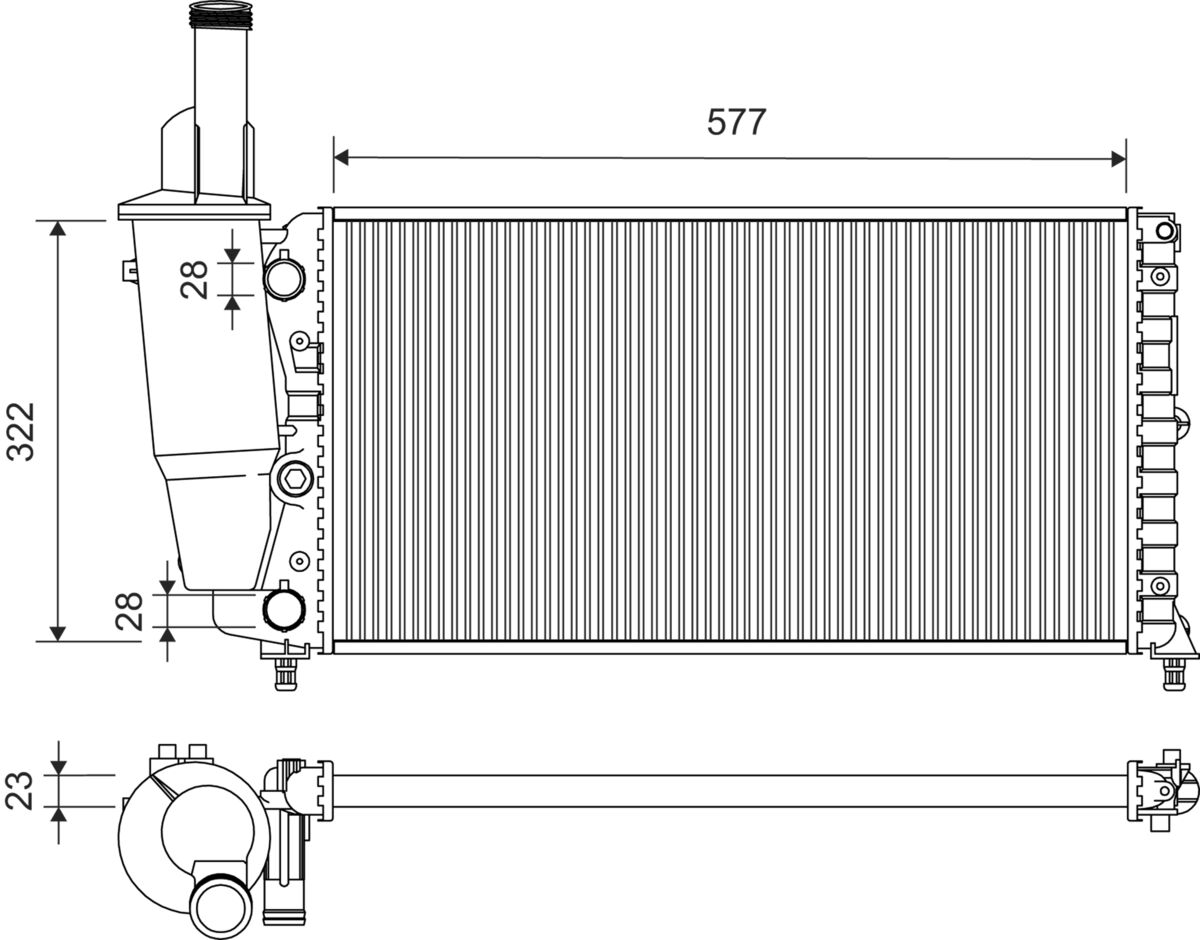 Вход Ø 1: 28mmИзход Ø 1: 28mmдълбочина на мрежа: 23mmдължина на мрежа: 578mmизпълнение на охладител: механично съединени охлаждащи ламеликачество: ALTERNATIVOматериал: алуминийматериал: пластмасаширина на мрежа: 322mm