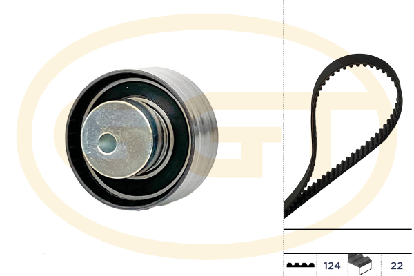 брой на зъбите: 124Брой ремъци: 1наличната ролка: 1ремък: със заоблен профил на зъбитеширина: 22mm