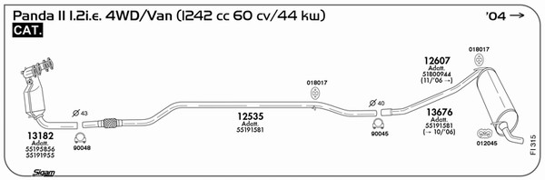 вид на катализатора: 20година на производство до: 200611номер на шаси (VIN) до: 788579