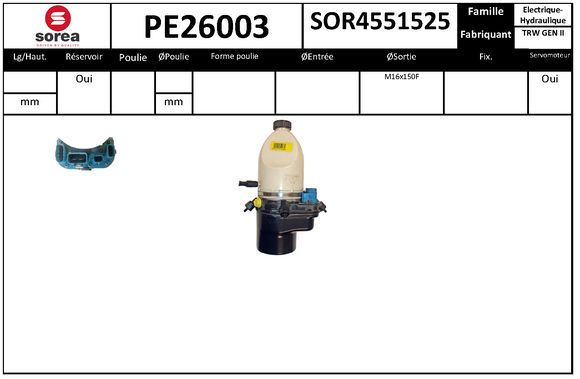 вид на експлоатация: електро-хидравличендопълващ артикул /допълваща информация: с резервоарза производител на кормилно управление: TRW
