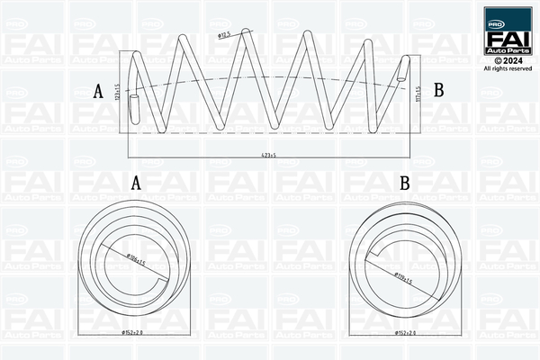 Междуосие: 10полезен товар: 50страна на монтаж: предна осброй на навивките: 5,9външен диаметър: 152mmдиаметър на жичките: 12,5mmдължина: 423mmформа на пружина: спирална пружина с еднаква дебелина на метала