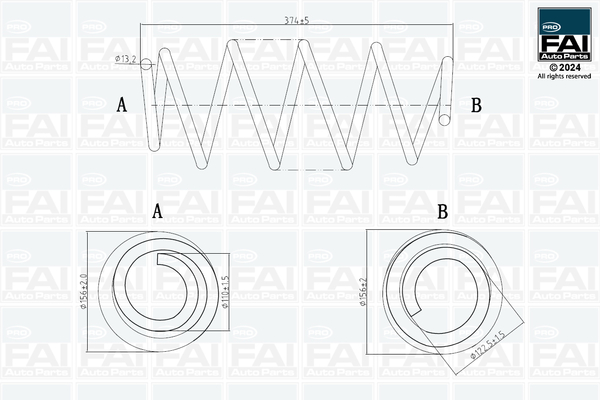 страна на монтаж: предна осброй на навивките: 5,4външен диаметър: 156mmдиаметър на жичките: 13,2mmдължина: 374mmформа на пружина: спирална пружина с еднаква дебелина на метала