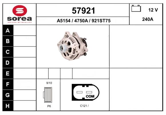 брой на ребрата: 6напрежение: 12волтзаряден ток на генератор: 240АРемъчна шайба Ø: 54mm