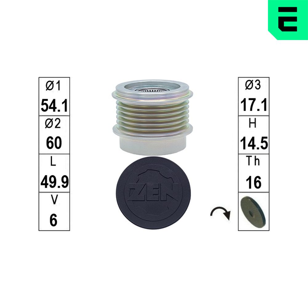 брой на каналите: 6външен диаметър: 54,1mmвътрешен диаметър: 17mmкачество: OE EQUIVALENTРазстояние първи жлеб: 22,3mm