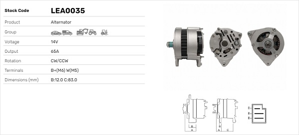 брой на каналите: 1Ø: 64,5mmнапрежение: 12волтзаряден ток на генератор: 70А