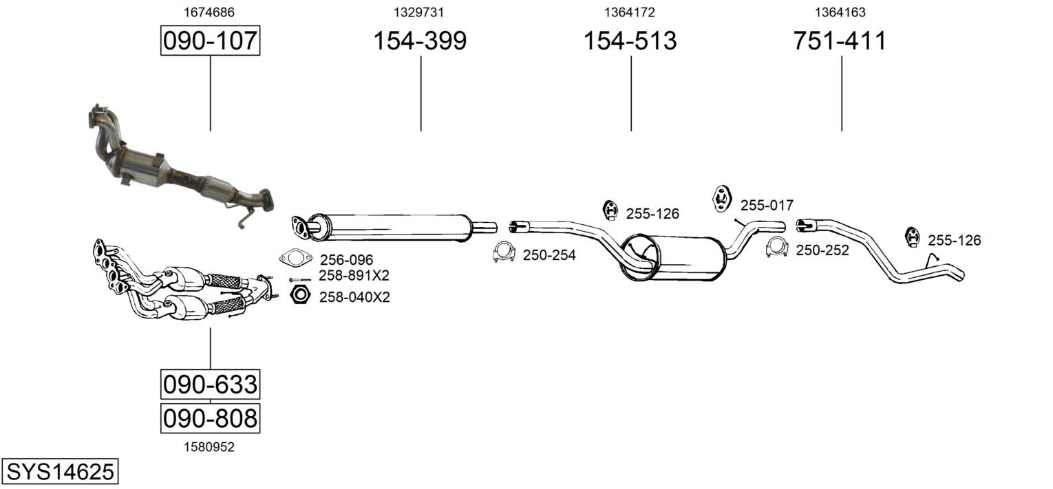 вид на катализатора: 20Линия/вариант на оборудване на автомобила: W/ single CAT