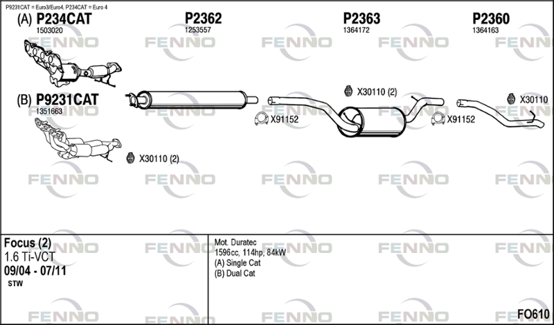 вид на катализатора: 20Линия/вариант на оборудване на автомобила: W/ double CAT