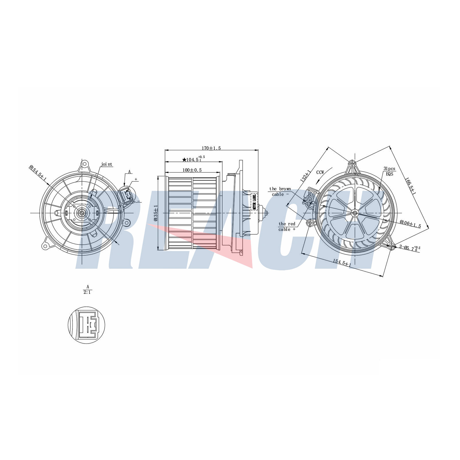 обурудване на автомобила: за автомобили с 6V електрическа мрежаброй на щепселните контакти: 2-щифтенØ: 135mmляв/десен волан: за автомобили с ляв воланноминална мощност: 240Wработно напрежение: 12волтрегулатор: без регулатор на оборотитетип на корпуса: пластмасов корпус