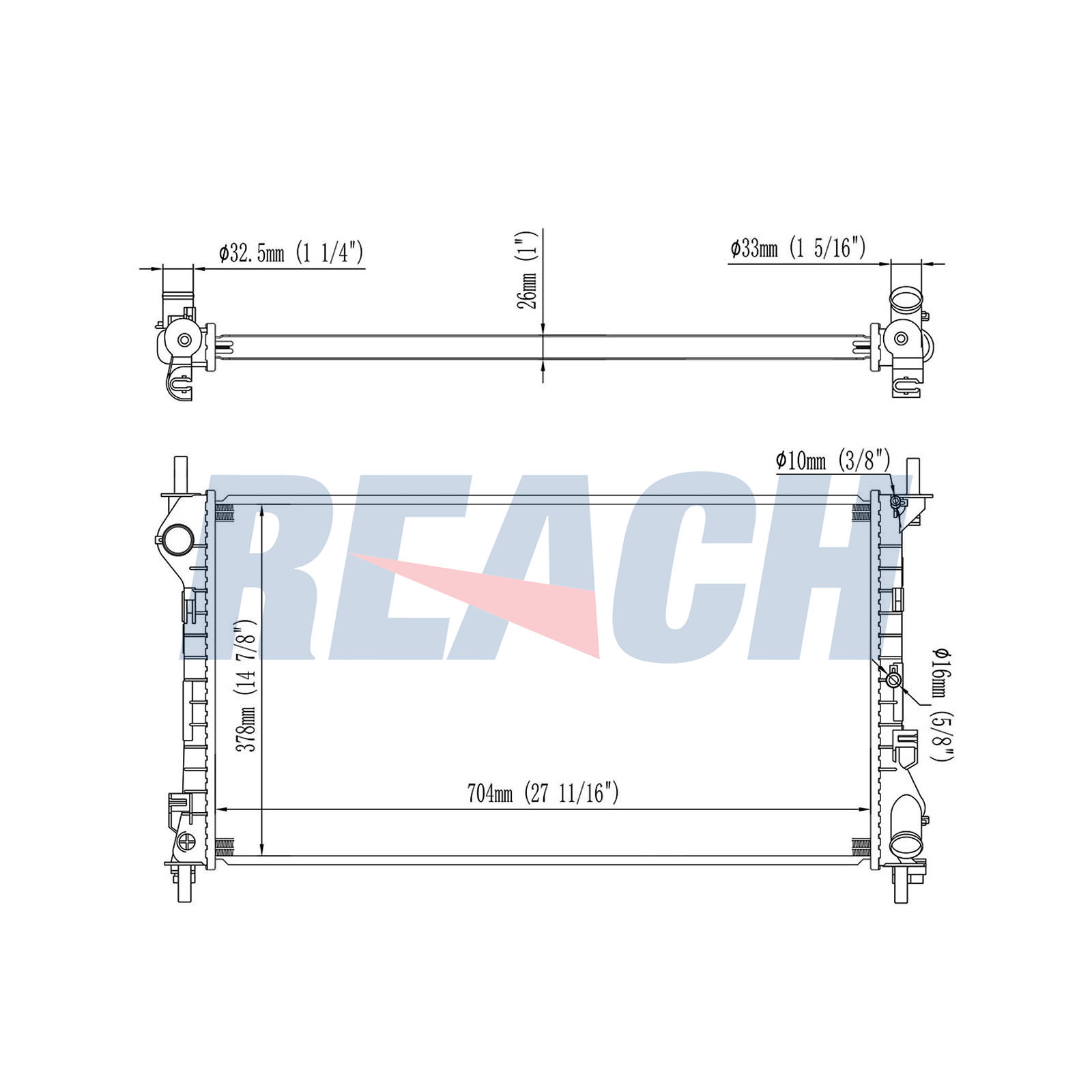 Входящ отвор Ø: 33mmдоп. артикул/доп. инфо. 2: без разширителен съддопълващ артикул /допълваща информация: с уплътнениядълбочина на мрежа: 32mmдължина на мрежа: 705mmизпълнение на охладител: механично съединени охлаждащи ламелиИзходящ отвор Ø: 33mmматериал на ламелите на радиатора: алуминийматериал на резервоар (охладител): пластмасаширина на мрежа: 396mm