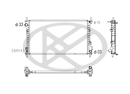 обурудване на автомобила: 50Входящ отвор Ø: 33mmдълбочина на мрежа: 24mmдължина на мрежа: 700mmИзходящ отвор Ø: 33mmматериал: алуминийматериал: пластмасаразмери на питата на радиатора: 700x385ширина на мрежа: 385mm
