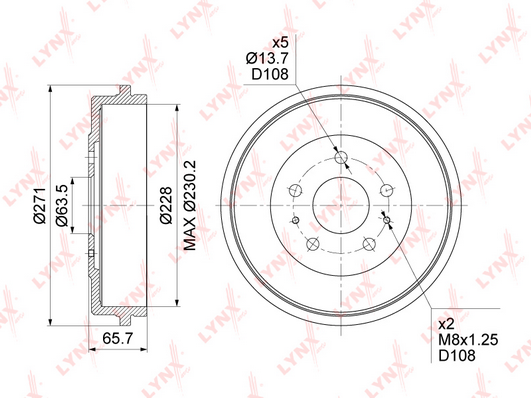 страна на монтаж: задна осджанта: 5-дупкиВисочина спирачен барабан общо: 66mmВисочина спирачен барабан отвътре: 51mmГлавина на колелото Ø: 64mmдиаметър на спирачния барабан отвън: 271mmдиаметър на спирачния барабан отвътре: 228mmДиаметър на кръговата стъпка Ø: 108mm