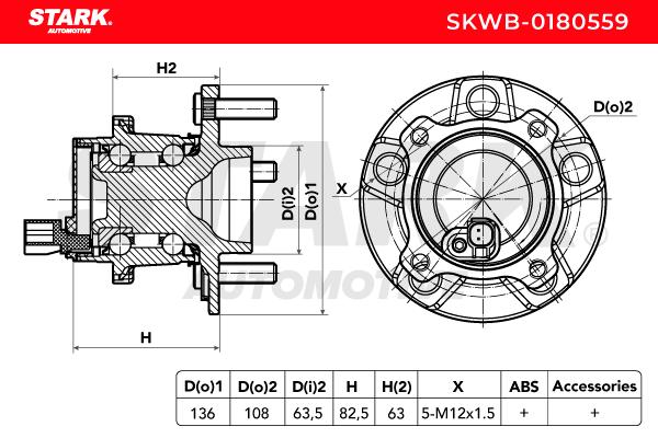 страна на монтаж: на задната ос отдяснострана на монтаж: на задната ос отляводжанта: 5-дупкиброй на връзките на фланеца: 4външен диаметър 1: 136mmдоп. артикул/доп. инфо. 2: с интегриран сензор за обороти на колелотоДиаметър на кръговата стъпка Ø: 108mmмярка на резбата: M12 x 1.5ширина 1: 83mm