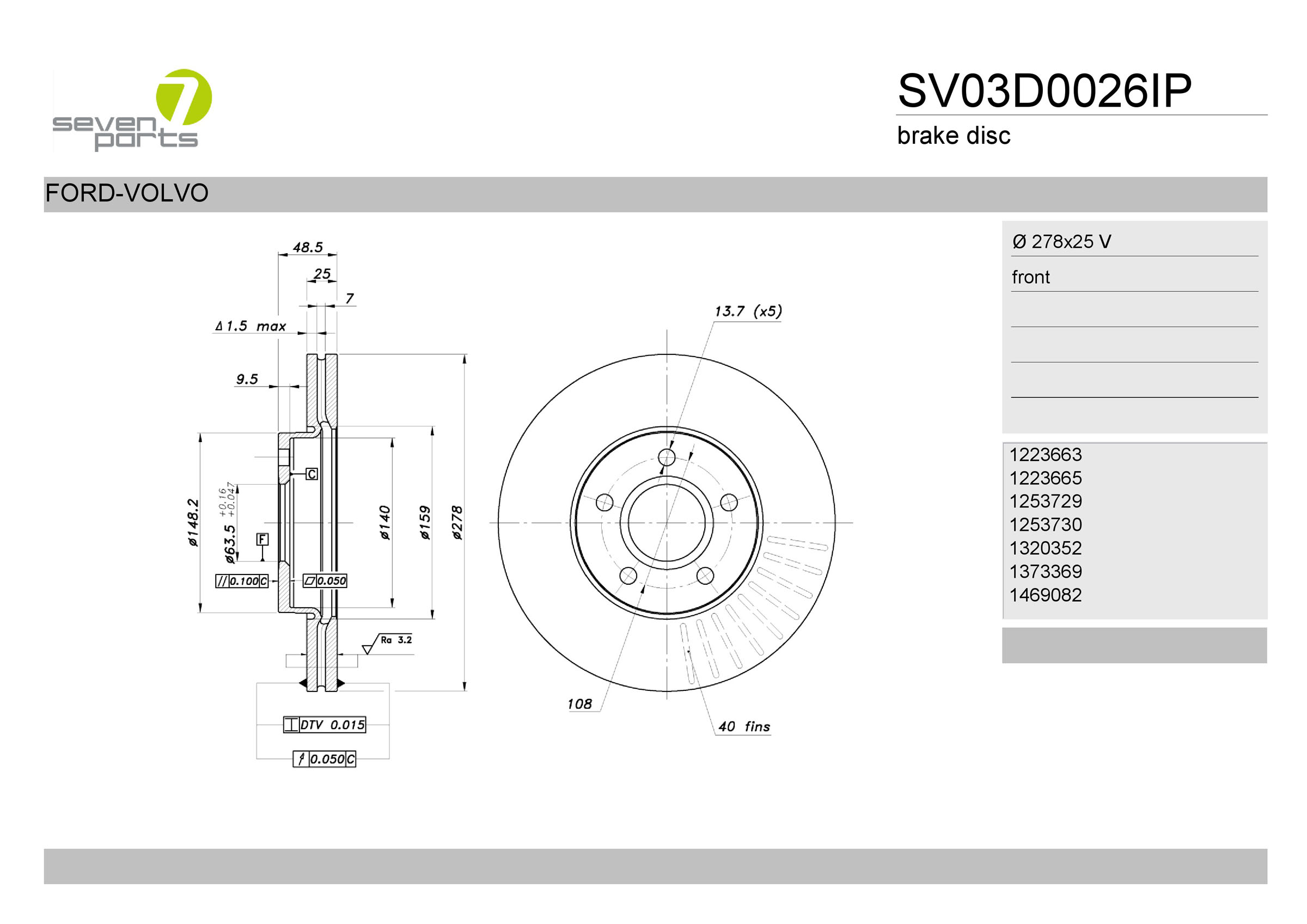 размер на джанта [цол=инч]: 15размер на джанта [цол=инч]: 16страна на монтаж: предна осброй на дупките за закрепване: 5вид на спирачния диск: вентилиранвисочина: 48,5mmвъншен диаметър: 278mmдебелина на спирачния диск: 25mmОтвор Ø: 14mmДиаметър на кръговата стъпка Ø: 108mmмин. дебелина: 23mmномер на артикул в чифта: ABC1041Lномер на артикул в чифта: ABC1041Rномер на артикул в чифта: PLU1145тегло: 7,3kgцентриращ диаметър: 63,6mm