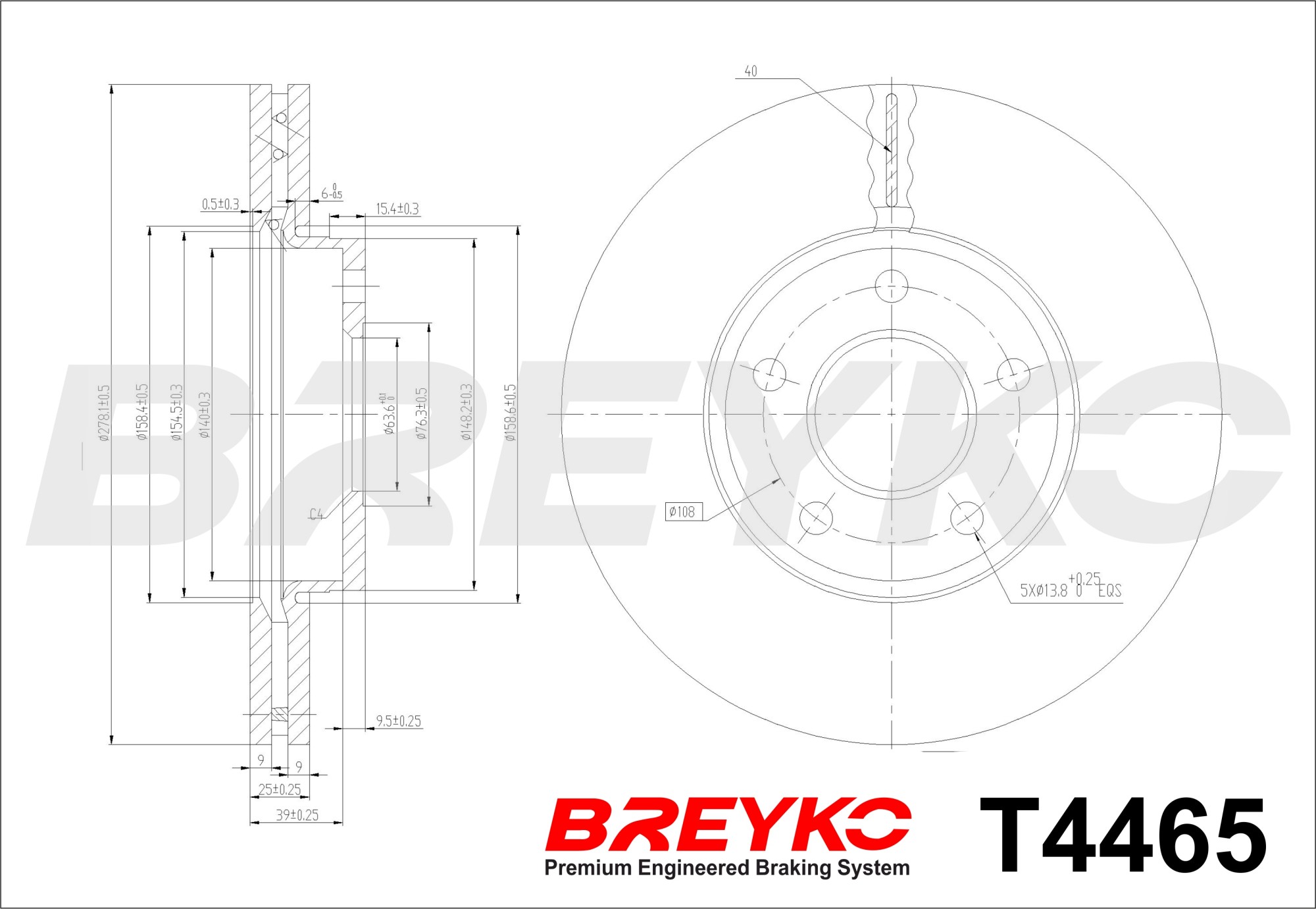 размер на спирачките: 98страна на монтаж: предна осджанта: 5-дупкивид на спирачния диск: вентилиранвисочина: 48,5mmвъншен диаметър: 278mmдебелина на спирачния диск: 25mmГлавина Ø: 148mmДиаметър на кръговата стъпка Ø: 108mmмин. дебелина: 23mmповърхност: с покритиецентриращ диаметър: 64mm