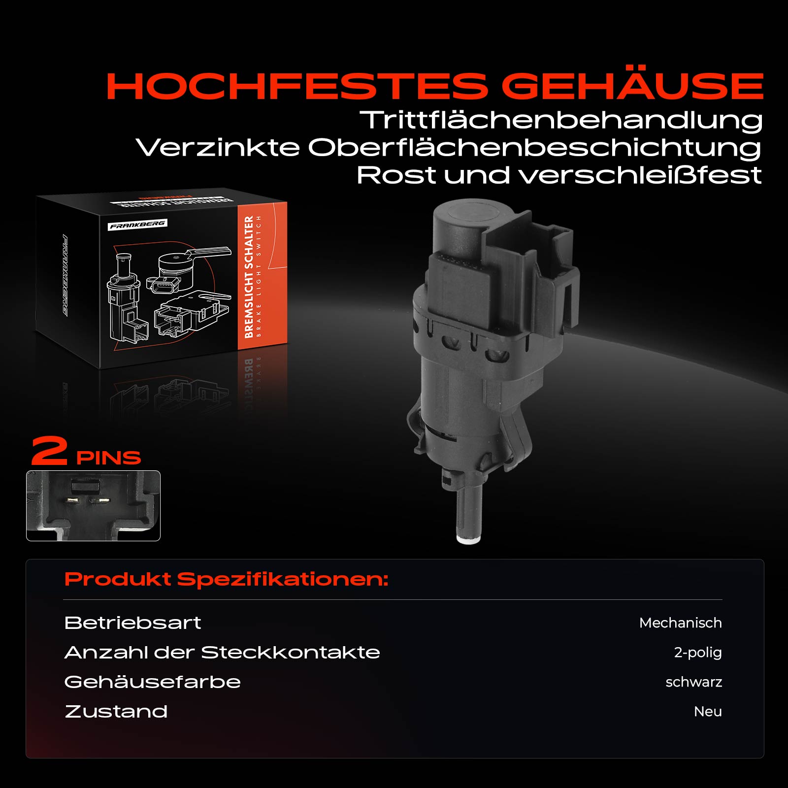брой на щепселните контакти: 2-щифтенвид на експлоатация: механиченвключваща функция: нормално затворен ключгаранция: 5 години гаранция или до 75 000km