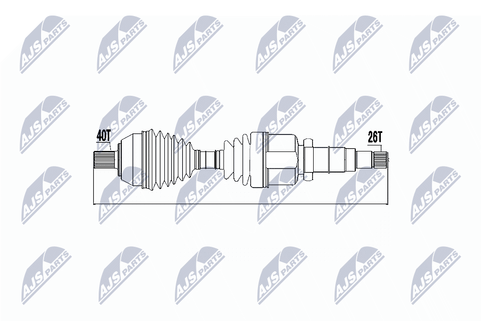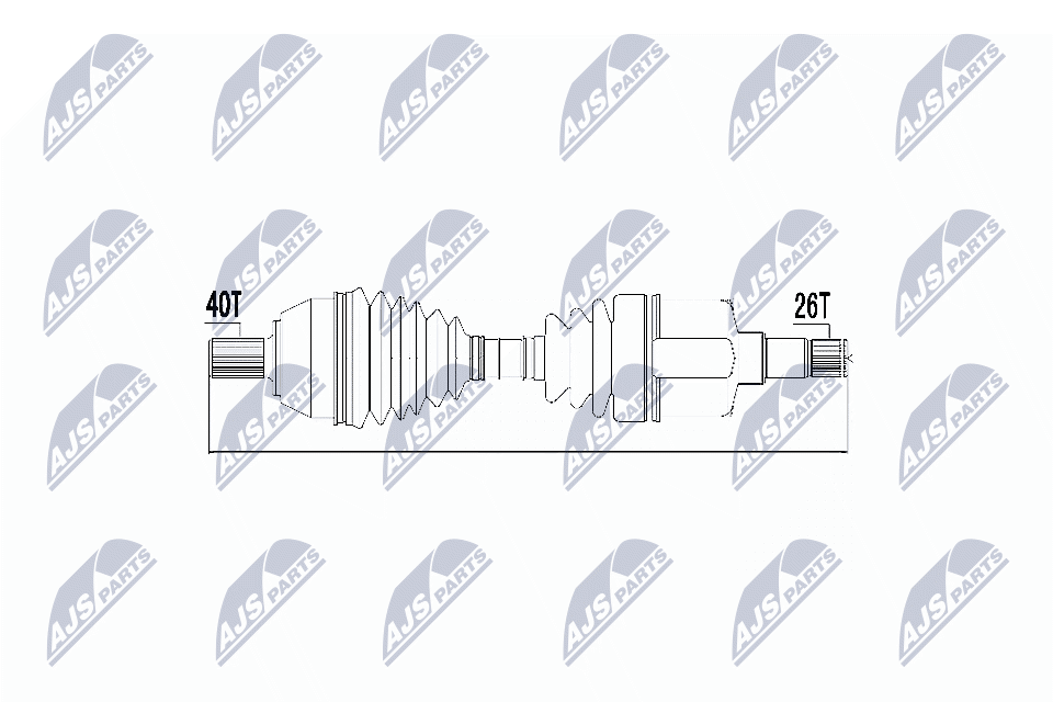 външни зъби от страна на колелото: 40външни зъби откъм диференциал: 26дължина: 606mmстрана на монтаж: на предната ос отляво