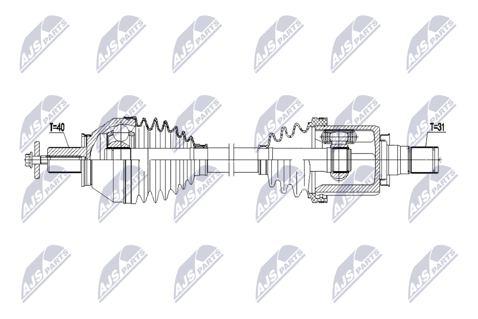 външни зъби от страна на колелото: 40външни зъби откъм диференциал: 31дължина: 595mmстрана на монтаж: на предната ос отляво