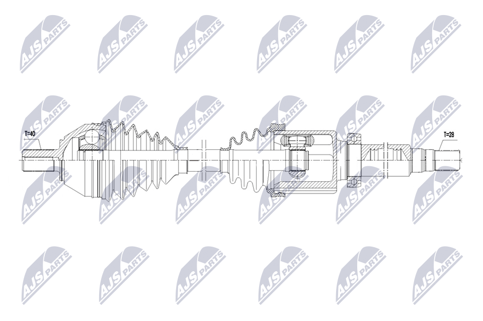 външни зъби от страна на колелото: 40външни зъби откъм диференциал: 28дължина 2: 393mmстрана на монтаж: на предната ос отдясно