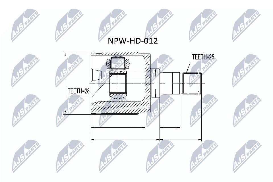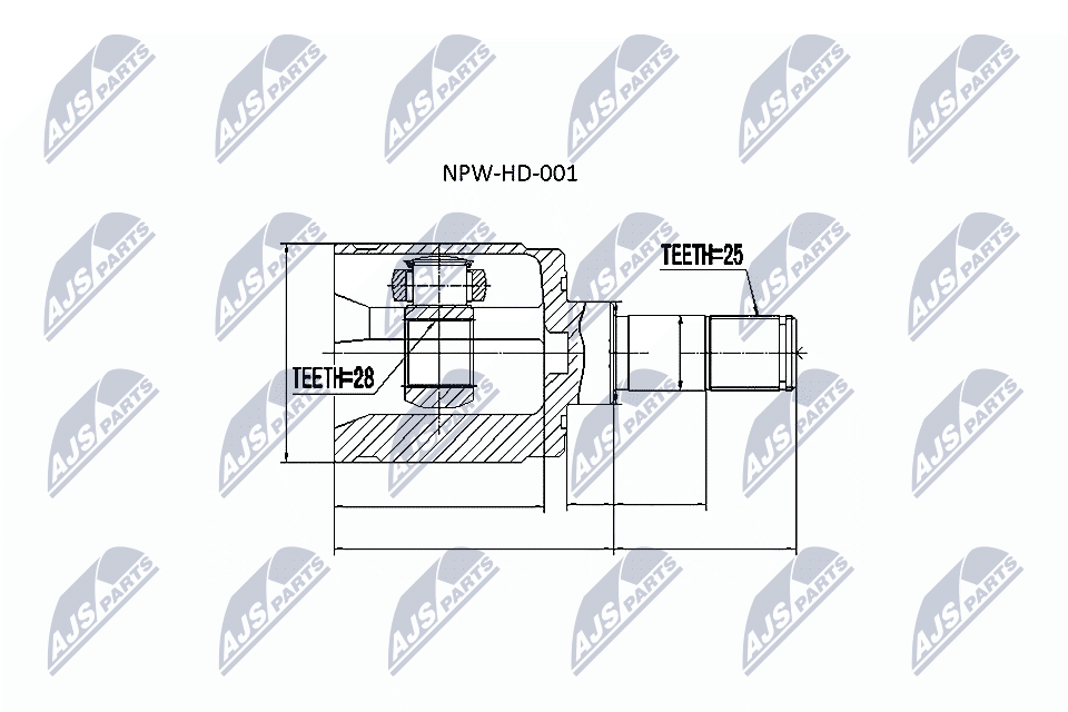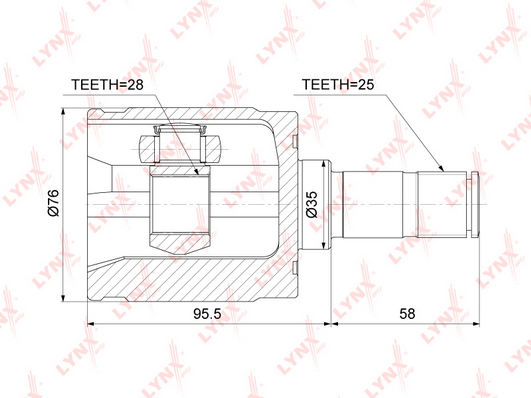 вид на шарнира: сферично каре (за предаване на постоянно движение)външни зъби откъм диференциал: 25Вътрешни зъби страна диф. (извод свързващ вал): 28диам. на гарн.: 35mmстрана на монтаж: на предната ос отлявострана на монтаж: от страната на трансмисията