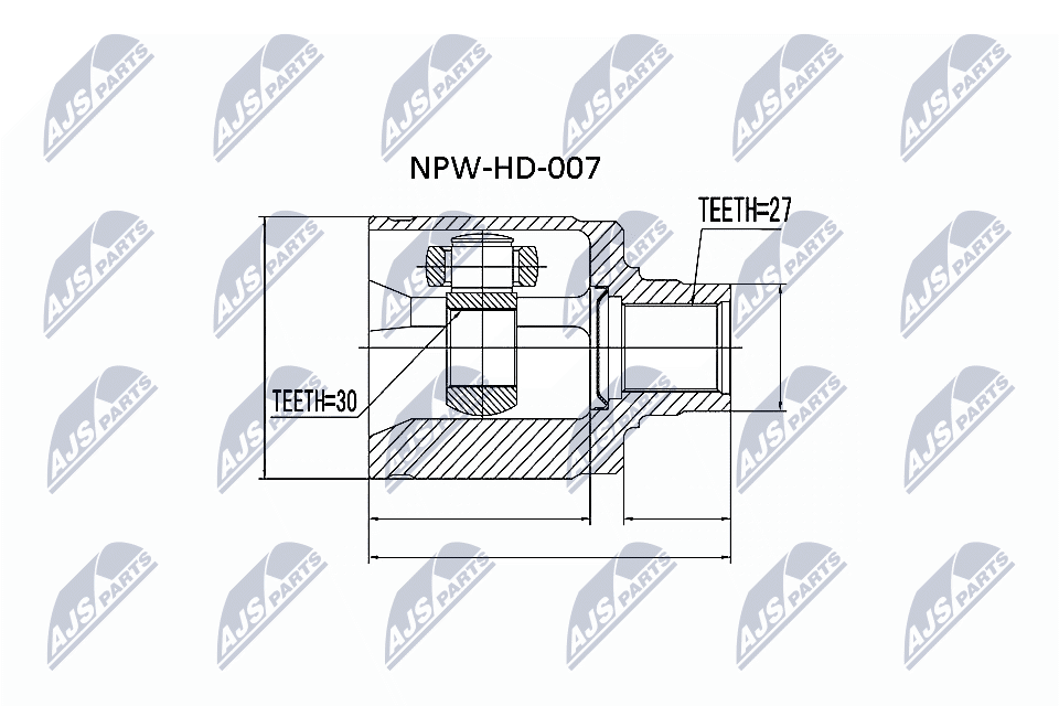 страна на монтаж: на предната ос отдясновъншни зъби откъм диференциал: 27Вътрешни зъби страна диф. (извод свързващ вал): 30диам. на гарн.: 40mmстрана на монтаж: от страната на трансмисията