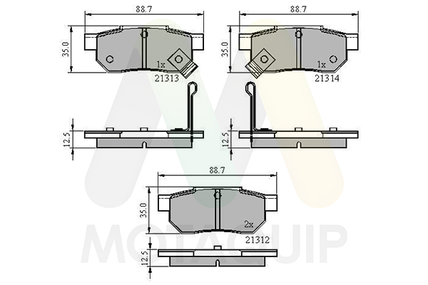 страна на монтаж: задна осWVA-номер: 21312WVA-номер: 21313WVA-номер: 21314брой на покритията: 4височина: 35mmдебелина: 12,6mmдължина: 88,7mmконтактен датчик за износване: с акустично предупреждение за износванеспирачна накладка: без скосен кантспирачна система: Nissin