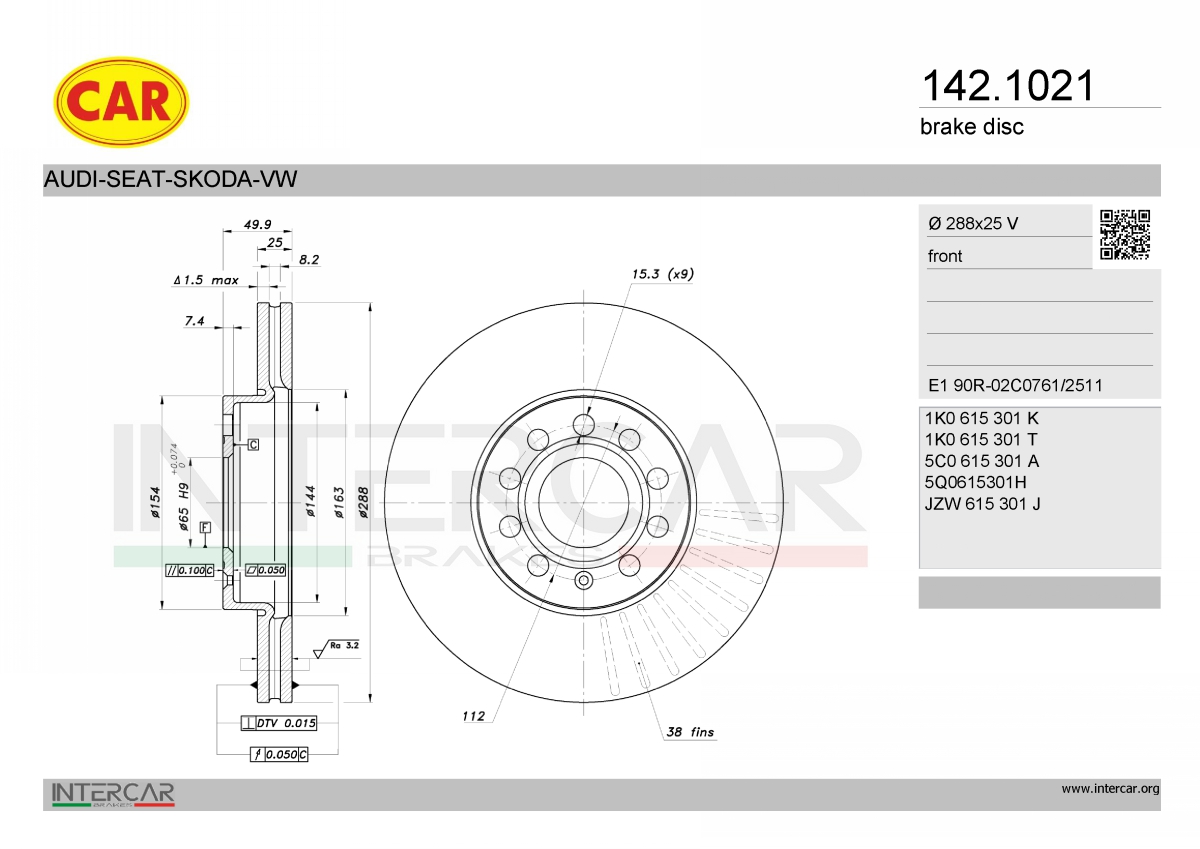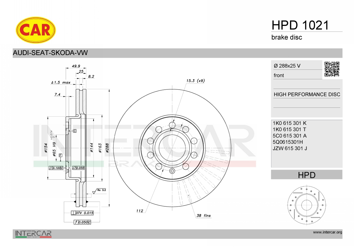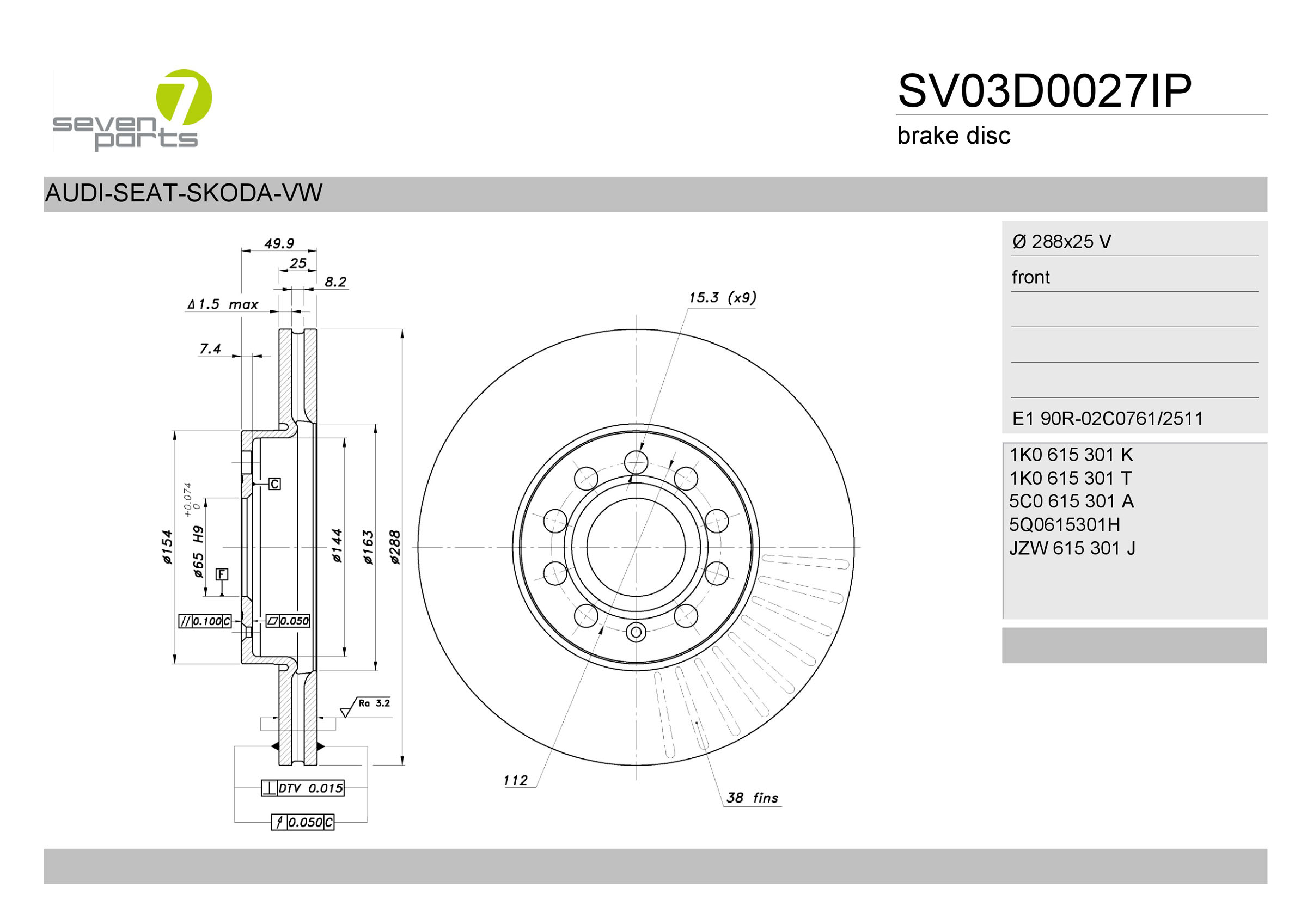 за PR-номер: 1ZEза PR-номер: 1ZPстрана на монтаж: предна осброй на дупките: 9вид на спирачния диск: вентилиранвисочина: 49,5mmвъншен диаметър: 288mmдебелина на спирачния диск: 25mmцентриращ диаметър: 65mm