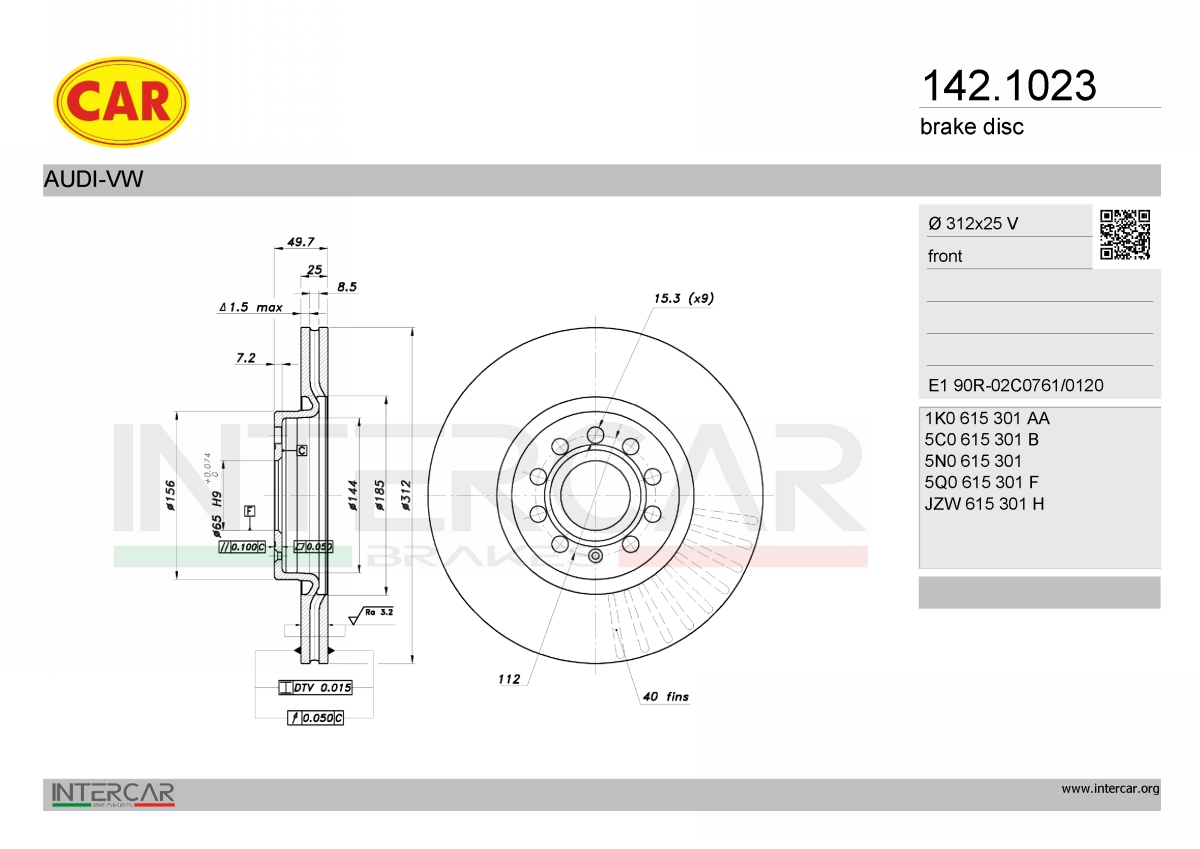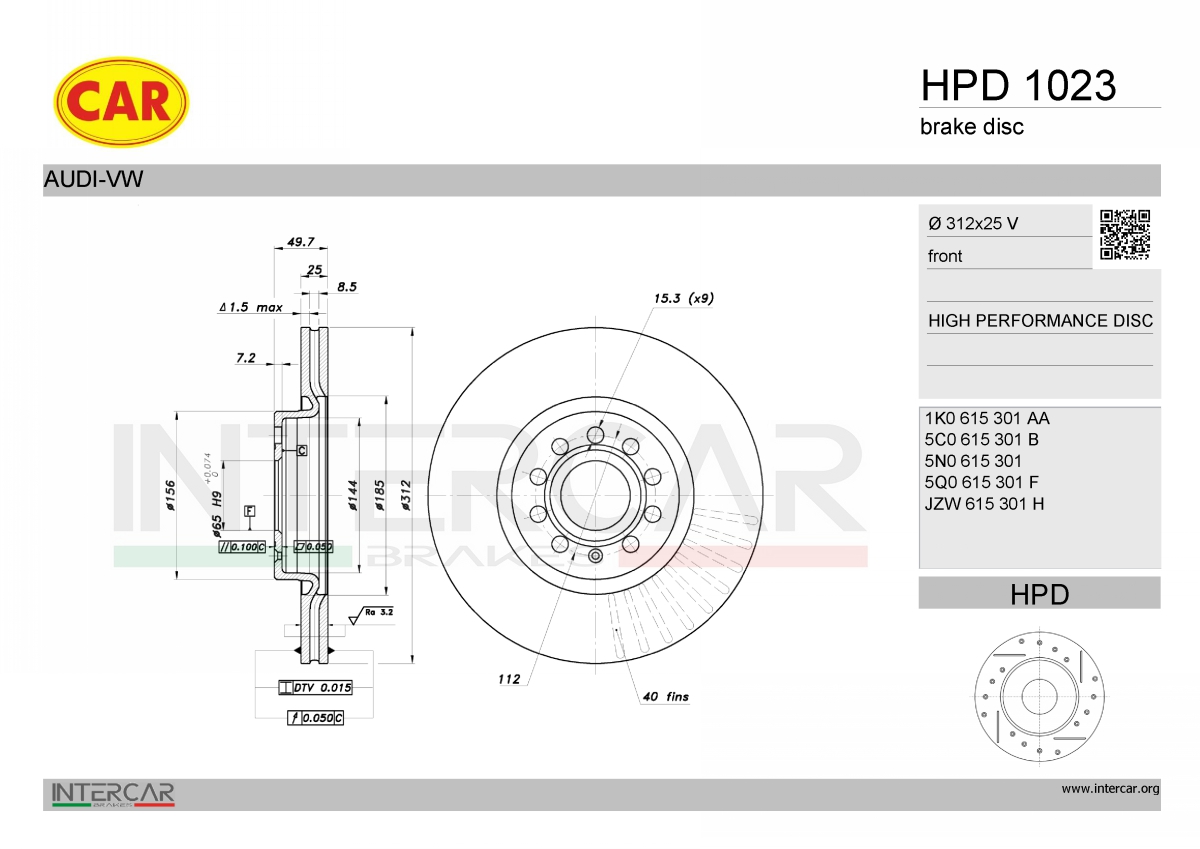 брой на дупките: 9вид на спирачния диск: вентилиранвисочина: 49,7mmвъншен диаметър: 312mmдебелина на спирачния диск: 25mmстрана на монтаж: предна ос