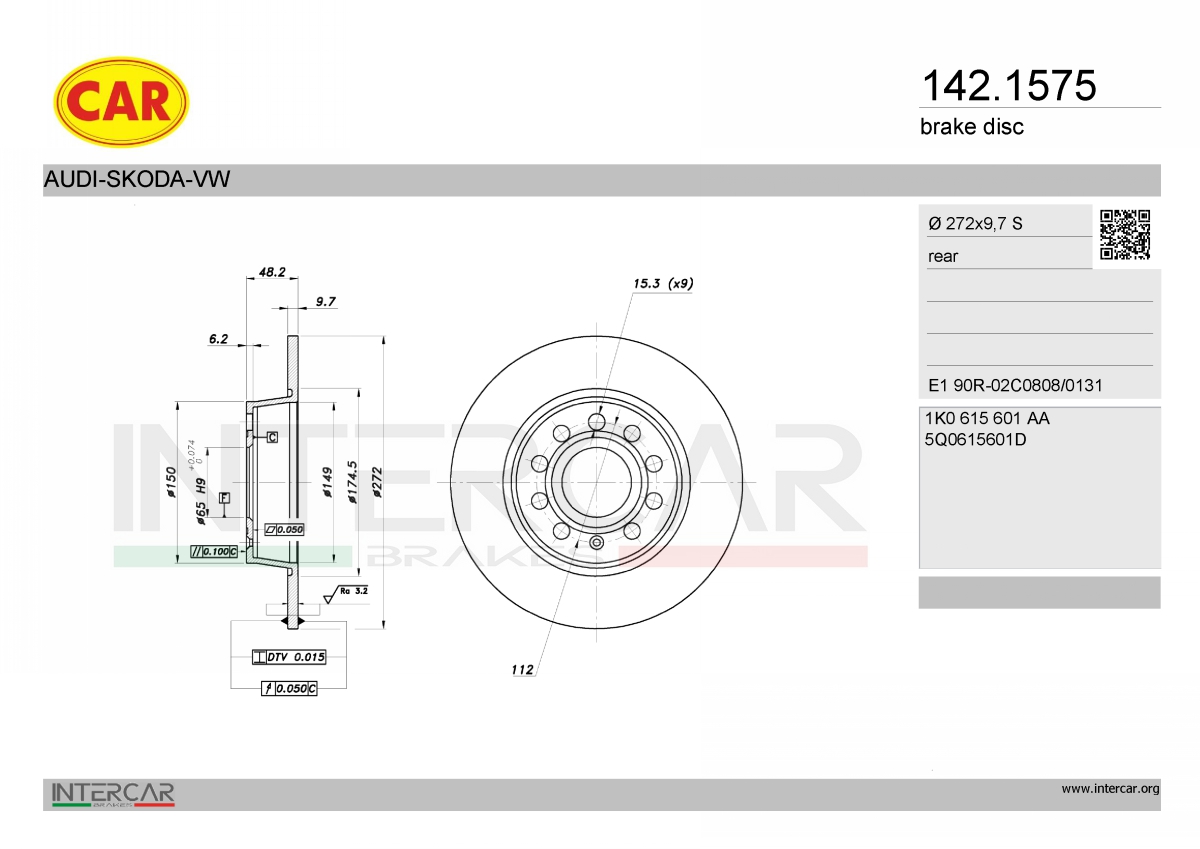 за PR-номер: 1KEза PR-номер: 1KRза PR-номер: 2EGза PR-номер: 2EJстрана на монтаж: задна осджанта: 5-дупкиброй на дупките: 9вид на спирачния диск: плътенвисочина: 48,3mmвъншен диаметър: 272mmдебелина на спирачния диск: 10mmцентриращ диаметър: 65mm