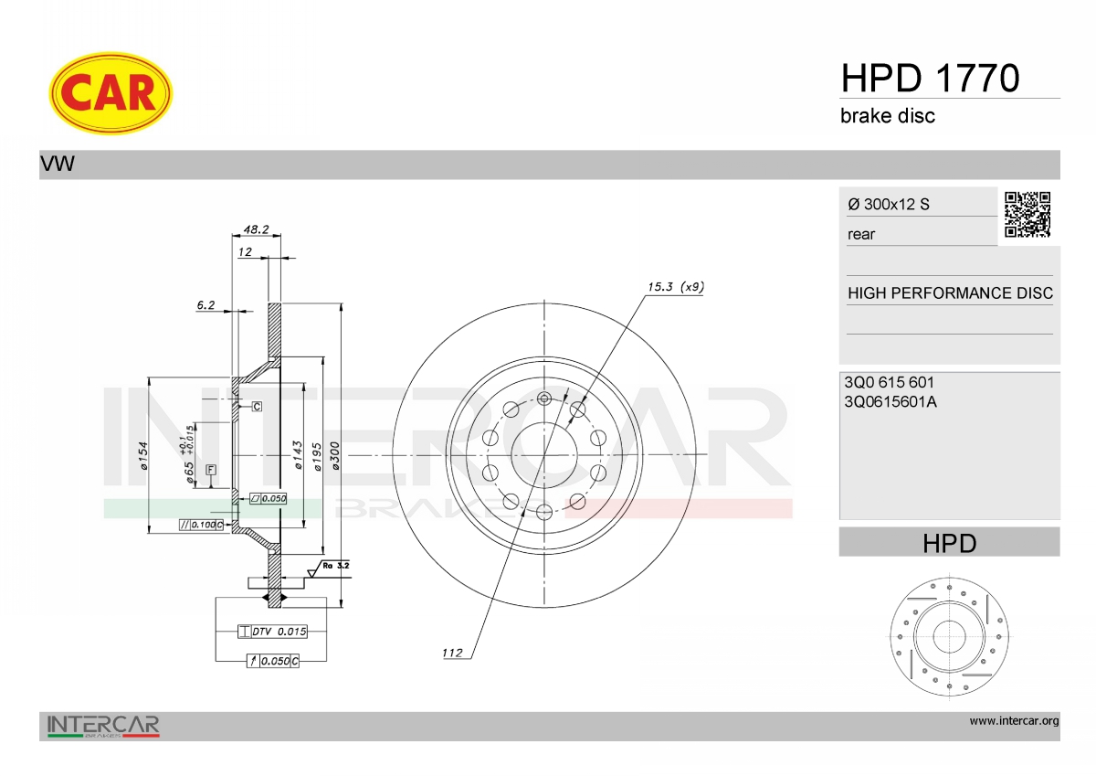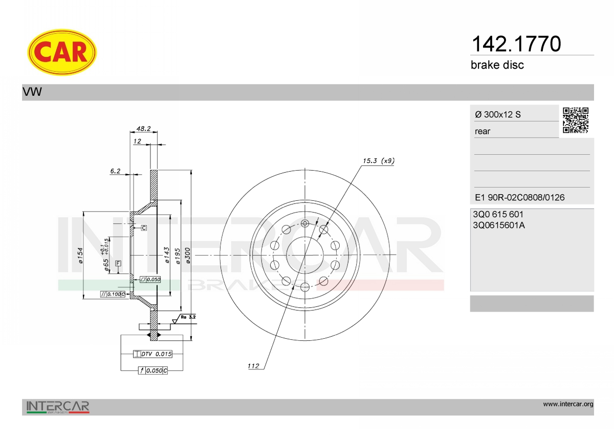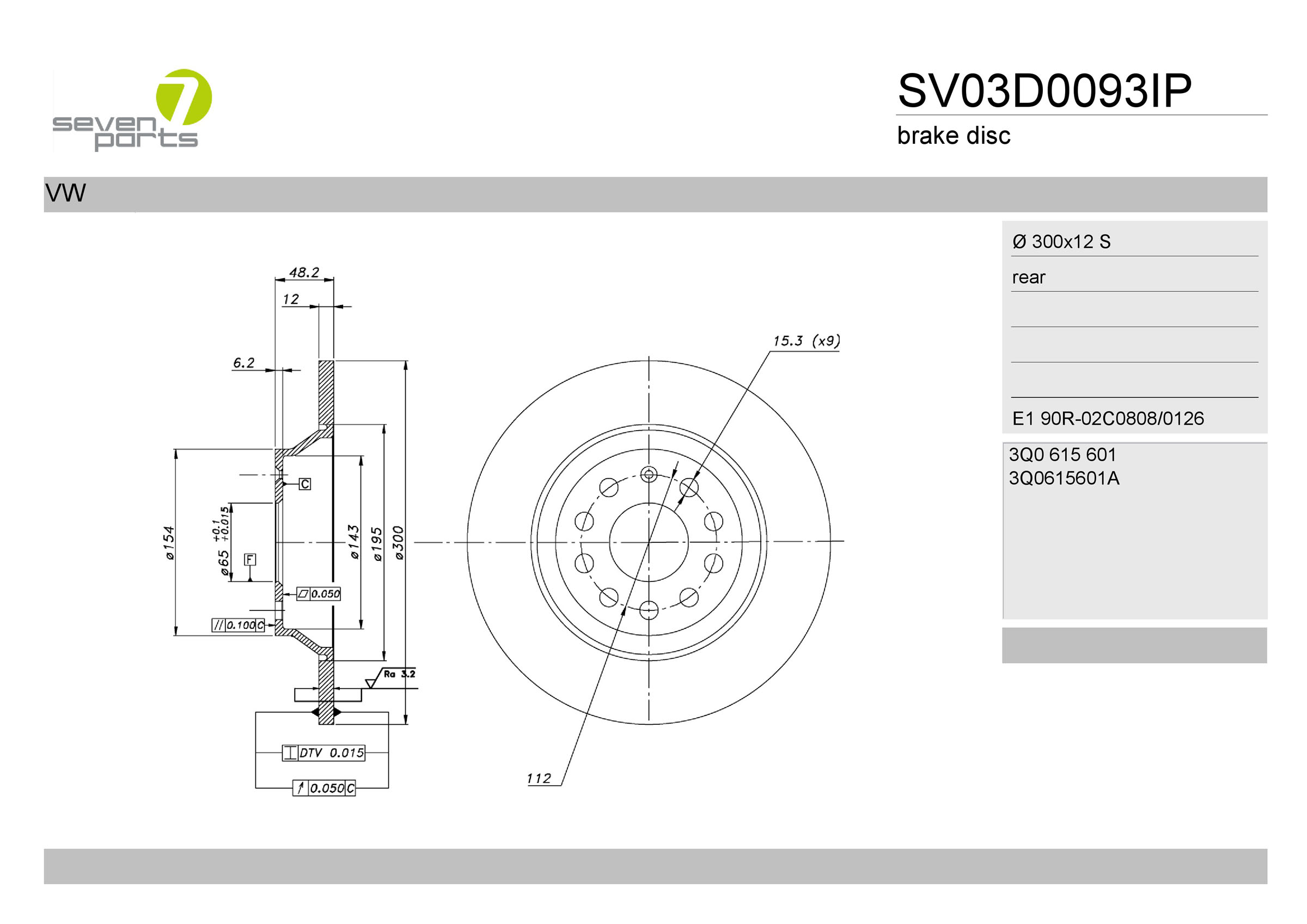 за PR-номер: 2EDстрана на монтаж: задна осТип автомобил: A3джанта: 5-дупкивид на спирачния диск: плътенвисочина: 48,3mmвъншен диаметър: 300mmдебелина на спирачния диск: 12mmГлавина Ø: 154mmДиаметър на кръговата стъпка Ø: 112mmмин. дебелина: 10mmповърхност: с покритиецентриращ диаметър: 65mm