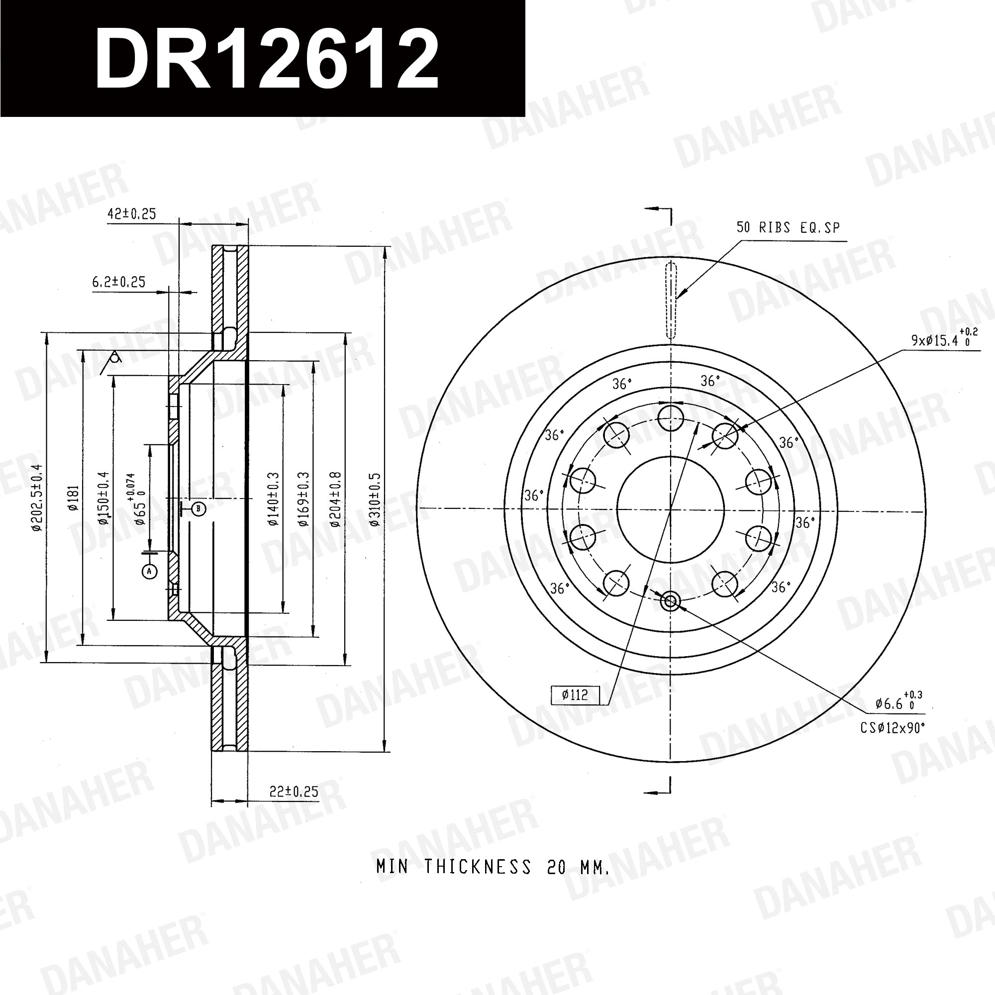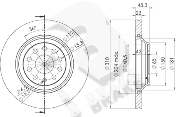 за PR-номер: 1KJза PR-номер: 1KYза PR-номер: 1KZобурудване на автомобила: 46джанта: 5-дупкивид на спирачния диск: вентилиранвисочина: 48,5mmВисочина главина спирачен диск: 46,2mmвъншен диаметър: 310mmдебелина на спирачния диск: 22mmДиаметър на кръговата стъпка Ø: 112mmмин. дебелина: 20mmстрана на монтаж: задна осцентриращ диаметър: 65mm