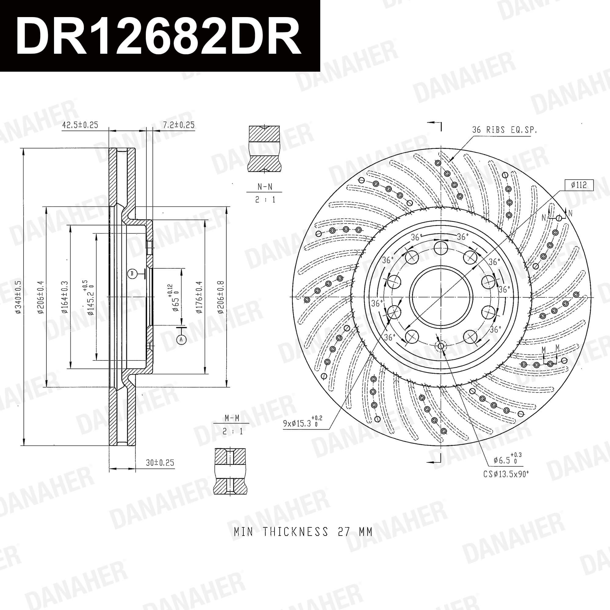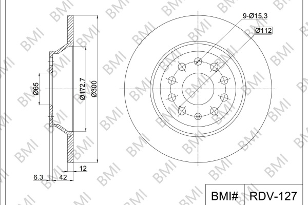 брой на дупките: 5вид на спирачния диск: плътенвисочина: 48,3mmвъншен диаметър: 300mmдебелина на спирачния диск: 12mmДиаметър на кръговата стъпка Ø: 112mmмин. дебелина: 10mmстрана на монтаж: задна осцентриращ диаметър: 65mm