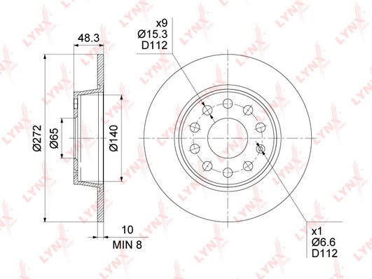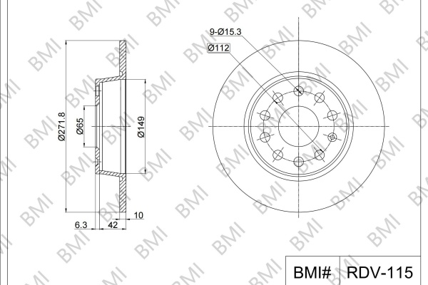 брой на дупките: 9вид на спирачния диск: плътенвисочина: 48,3mmвъншен диаметър: 271,8mmдебелина на спирачния диск: 10mmмин. дебелина: 9mmстрана на монтаж: задна осцентриращ диаметър: 65mm
