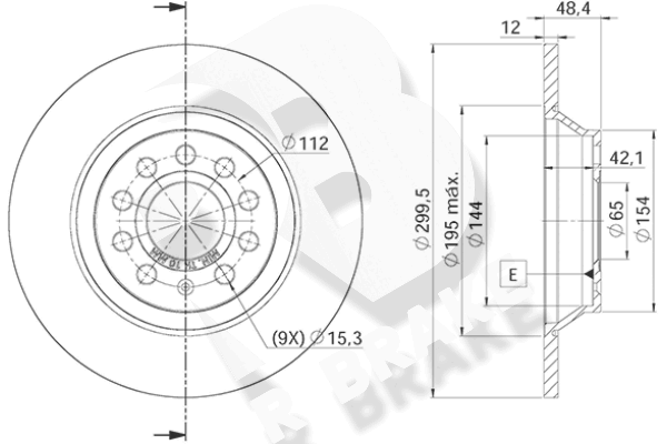 брой на дупките: 5вид на спирачния диск: плътенвисочина: 48,3mmвъншен диаметър: 300mmдебелина на спирачния диск: 12mmДиаметър на кръговата стъпка Ø: 112mmмин. дебелина: 10mmповърхност: с покритиестрана на монтаж: задна осцентриращ диаметър: 65mm
