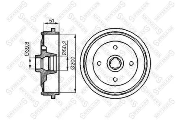 брой на дупките: 4Височина спирачен барабан отвътре: 51,5mmдиаметър на спирачния барабан отвътре: 200mmДиаметър на кръговата стъпка Ø: 39,9mmстрана на монтаж: задна ос