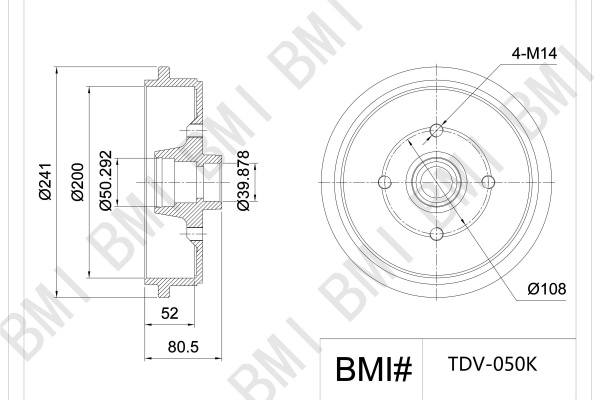 брой на дупките: 4височина: 80,5mmвъншен диаметър: 241mmдиаметър на спирачния барабан отвън: 201mmдиаметър на спирачния барабан отвътре: 200mmДиаметър на кръговата стъпка Ø: 108mmстрана на монтаж: задна остегло: 5,5kgцентриращ диаметър: 39,9mm